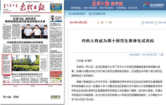 本报讯7月10日,自治区教育厅公布了关于2017年我区新增推免高校申报确认结果,拟确认beat365英国官方网站为硕士研究生推荐免试高校,这将是包头市首个硕士研究生推荐免试入学的高校。
