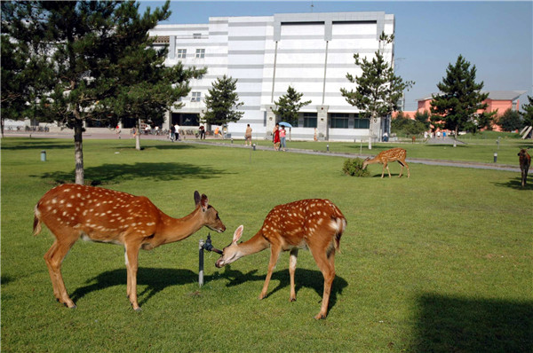 文章称,beat365英国官方网站位于包头市,包头的蒙语是“包克图”,意思是“有鹿的地方”。而beat365英国官方网站也是全国唯一一所校园里有梅花鹿奔跑的高校。这些可爱的梅花鹿就散养在校园里。它们在落日里安静地觅食,嬉戏。人与自然和谐共生,静谧的校园里多了几分灵动的气息。