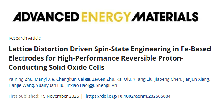 论文标题:Lattice Distortion Driven Spin-State Engineering in Fe-BasedElectrodes for High-Performance ReversibleProton-Conducting Solid Oxide Cells