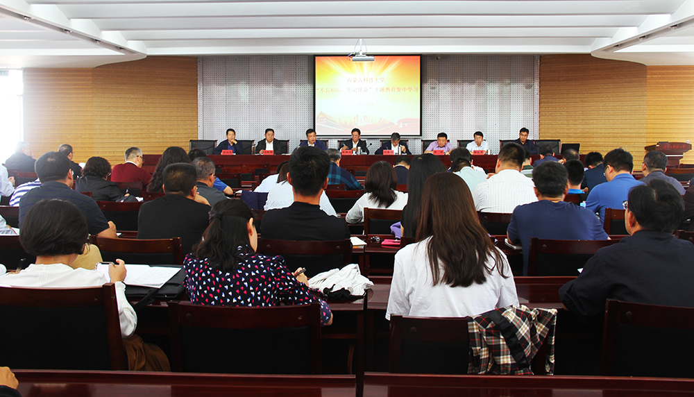 为深入学习贯彻习近平新时代中国特色社会主义思想,扎实开展“不忘初心、牢记使命”主题教育,9月24日上午,学校“不忘初心、牢记使命”主题教育集中学习部署会在办公楼A201会议室召开,会议对主题教育集中学习提出要求,并对接下来为期一周的封闭式集中学习进行全面部署。学校党政领导安胜利、任慧平、李斌、冯志强,党委委员杨家庆、田立志、赵永旺,学术工作委员会、学生工作委员会、巡察督导工作委员会全体成员,全校正副...