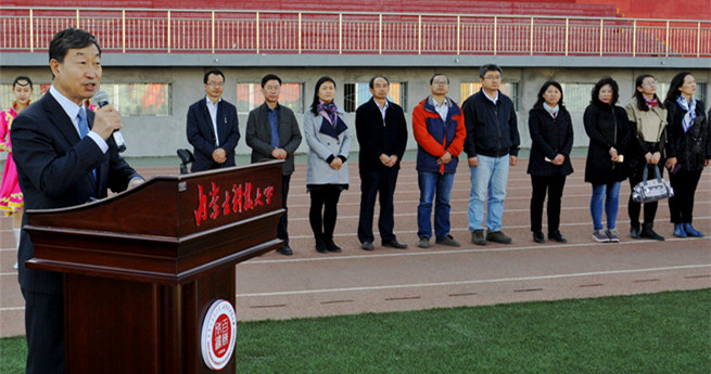 4月7日下午,由体育部主办、大学生体育协会承办的beat365官网2016年“校长杯”足球赛在学校主校区体育场拉开帷幕。共有14支代表队267名运动员参赛。校党委副书记、常务副校长安胜利,党委常委、副校长任慧平,党委常委、副校长吕晓琪及各学院相关负责人出席开幕式。