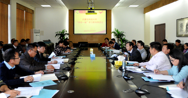 12月13日,为进一步推进“两学一做”学习教育,总结前一阶段学习教育的经验,安排部署下一阶段工作,学校在办公楼A205会议室召开“两学一做”学习教育推进会。校党政领导安胜利、杨建林、赛音庆格勒,巡视督导工作委员会副主任,各党总支、直属党支部书记、副书记,党政办、纪委办、组织部、宣传部负责同志参加会议。校党委常委、组织部部长冯志强主持会议。