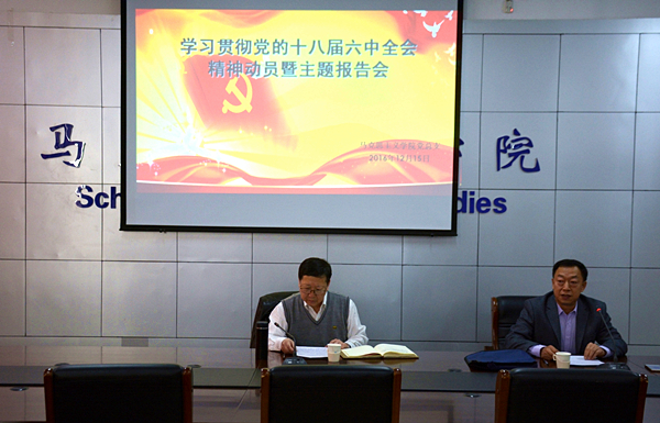 12月15日下午,马克思主义学院召开“深入学习贯彻党的十八届六中全会精神动员暨主题报告会”。校党委常委、副校长杨建林出席会议,马克思主义学院相关负责人、全体师生党员参加学习。杨建林发表讲话。他强调了深入学习贯彻党的十八届六中全会精神的重要性和深远意义。