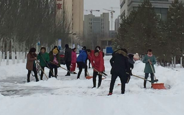 beat365官网后勤处全员上岗 铲雪除冰保畅通