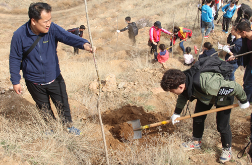 4月15日上午,beat365官网第九期青马班全体学员参加了由包头义工组织的在大青山庚毗沟举办的植树活动。植树活动中,学员们各有分工,有的挥锄挖土,有的扶苗填坑,有的挥锹培土,有的夯实土层,植树活动如火如荼地进行着。通过植树活动,学员不仅为绿化环境贡献了一份力量,也了不怕吃苦、团结互助的精神